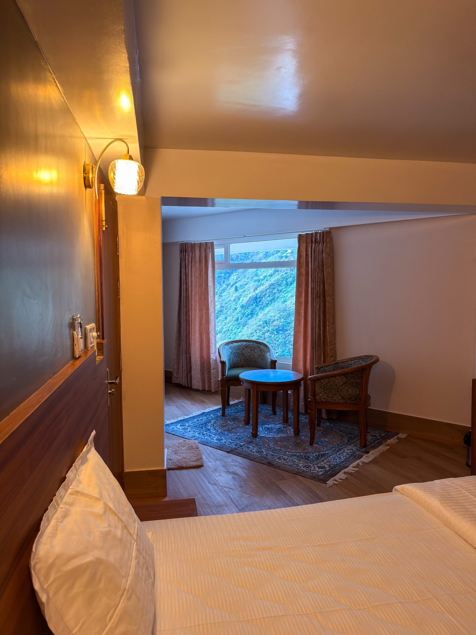 Each room is spacious, elegantly furnished, and equipped with essential modern amenities to ensure a comfortable stay. Step onto your balcony to take in panoramic views of the majestic Himalayas — the perfect way to begin or unwind after a day of sightseeing.
